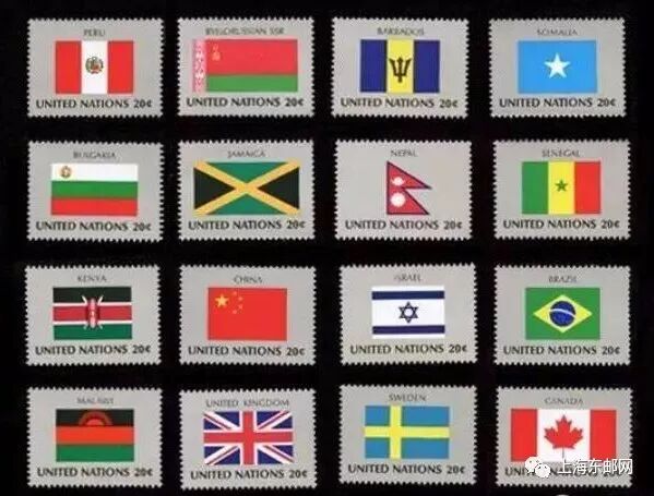 1980年起,联合国邮政陆续发行各个成员国的国旗邮票。首批发行的国旗邮票以每年发行一组16枚成员国国旗的进度,截止1989年共发行了十组160枚。将当时联合国全部159个成员国国旗及联合国旗帜搬上了邮票,形成了蔚为壮观的国旗系列大全套。