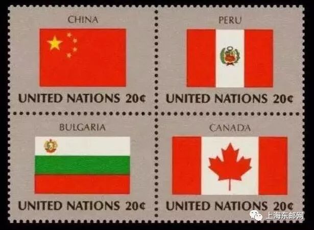 在最初发行的十组联合国成员国国旗邮票中,以1983年9月23日发行的第四组邮票最受我国集邮爱好者的青睐。原因很简单,因为在这一组,有我国的国旗——五星红旗。
